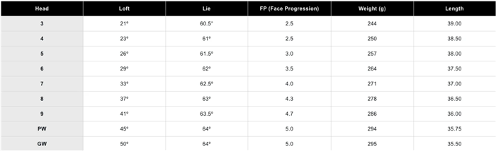 Variable Depth Cavity: The weighting is progressive throughout the set. Long irons have a lower, deeper center of gravity (CG) for easier launch, while short irons feature a higher CG for a flatter, more controlled flight with higher spin.